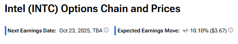 인텔 (INTC)이 10월 23일 목요일 3분기 실적을 발표할 예정이며, 옵션 시장은 잠재적으로 변동성이 큰 반응을 시사하고 있다. 트레이더들은 실적 발표 후 양방향으로 10.1%의 움직임을 예상하고 있으며, 이는 이 반도체 제조업체의 턴어라운드 노력과 반도체 수요에 대한 불확실성을 반영한다. 흥미롭게도, 이러한 잠재적 변동폭은 INTC의 장기 평균 실적 발표 후 움직임인 -2.78%보다 훨씬 크며, 이는 소폭 하락을 반영한다.