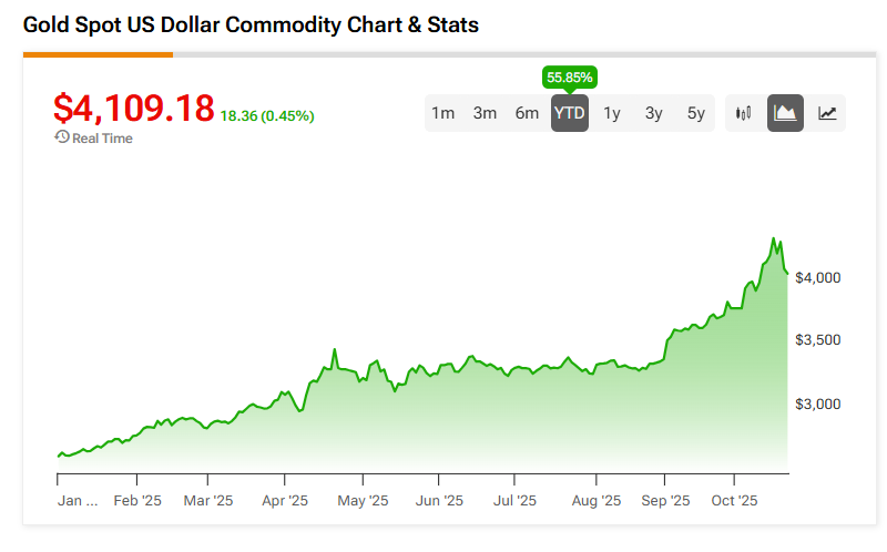 금은 2025년 최고 성과를 낸 자산 중 하나로, 올해 50% 이상 상승했다.