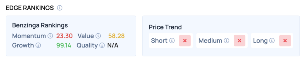 벤징가 엣지 주식 순위에 따르면 게임스톱은 성장성 점수에서 100점 만점에 99.14점이라는 뛰어난 점수를 기록했다.