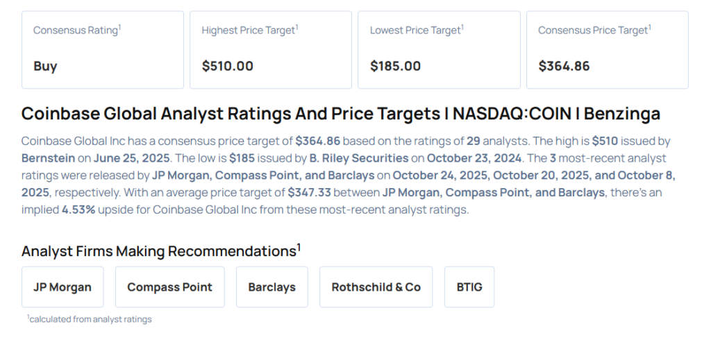 - JP모건의 케네스 워딩턴 애널리스트는 코인베이스 글로벌(NASDAQ:COIN)에 대한 투자의견을 '중립'에서 '비중확대'로 상향 조정했다. 목표가는 342달러에서 404달러로 상향했다. 코인베이스 주가는 목요일 322.76달러에 마감했다.