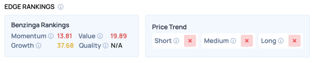 벤징가 엣지 순위에 따르면 AMC 주식의 현재 성장 점수는 37.68을 기록하고 있다.