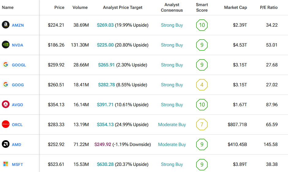 팁랭크스의 비교 도구를 사용하여 기사에 언급된 월가의 주요 AI 기업들을 정리했다. 이는 각 주식과 AI 산업 전체에 대한 더 넓은 관점을 얻는 데 유용한 도구다.