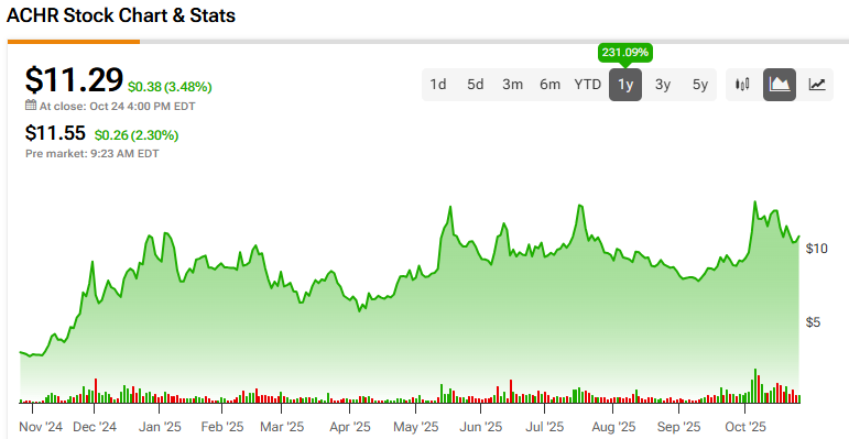 한편 ACHR 주가는 금요일 3.48% 상승하여 11.29달러에 마감했다.
