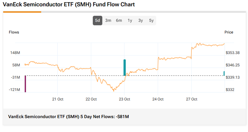 지난 5일간 SMH ETF는 약 8,111만 달러의 순유출을 기록했으며, 지난 3개월간은 20억 달러의 순유입을 기록했다.