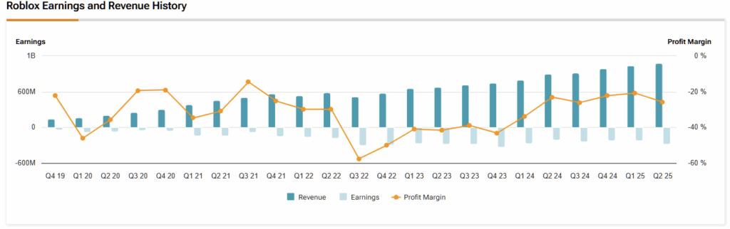 지난 10개 분기 동안 로블록스는 주당순이익 전망치를 단 3회, 매출 전망치를 단 2회만 하회하며 월가의 기대치를 지속적으로 상회해왔다. 회사가 목요일 2025년 3분기 실적을 발표할 예정인 가운데, 투자자들은 로블록스가 폭발적인 성장 모멘텀을 유지할 수 있을지, 그리고 펀더멘털이 마침내 높은 밸류에이션을 따라잡을 수 있을지 궁금해할 것이다.