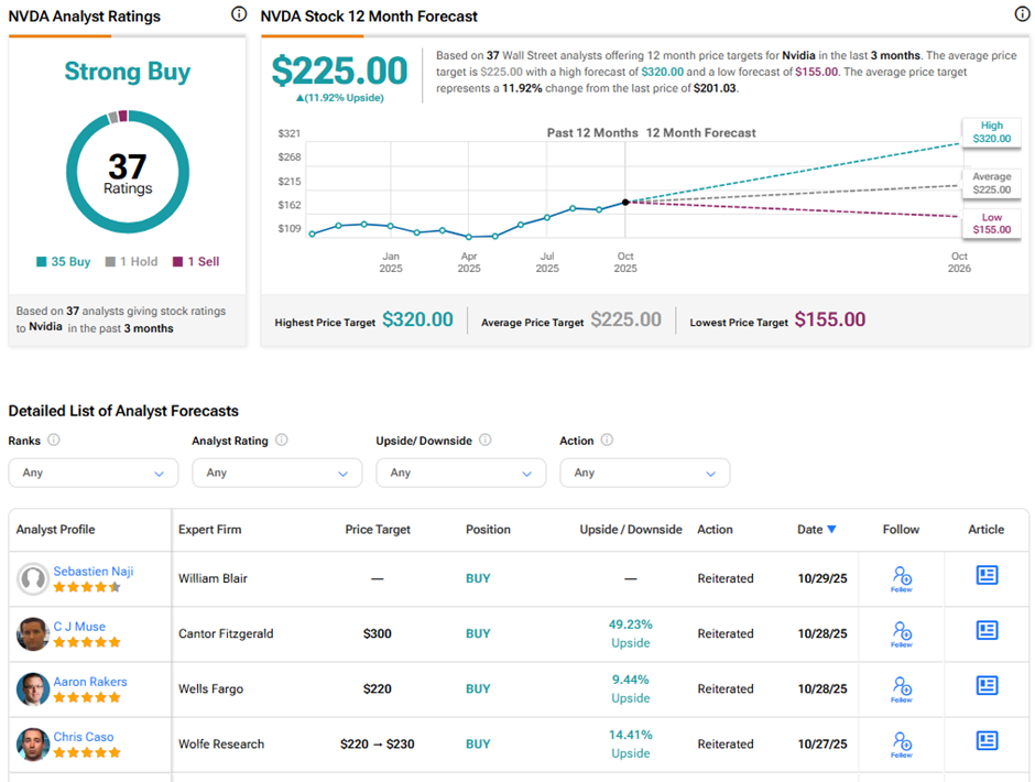 증권가는 엔비디아의 장기 전망에 대해 매우 낙관적이다. 팁랭크스에서 NVDA 주식은 35개의 매수, 1개의 보유, 1개의 매도 의견을 기반으로 강력 매수 컨센서스 등급을 받고 있다. 평균 엔비디아 목표주가 225달러는 현재 수준에서 거의 12%의 상승 여력을 시사한다. 연초 대비 NVDA 주식은 거의 50% 상승했다.