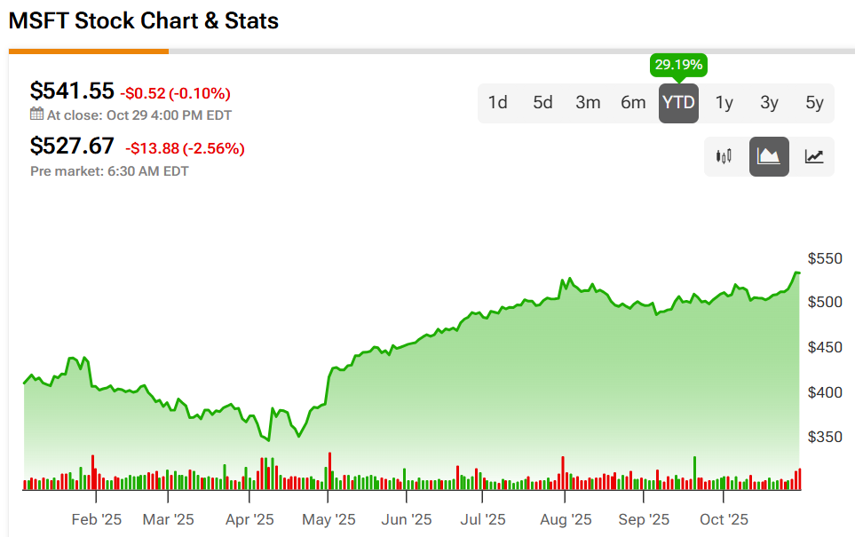 마이크로소프트(MSFT)가 2026 회계연도 1분기 실적에서 월가 전망치를 상회하는 강력한 성과를 기록했지만, 주가는 하락했다. 투자자들이 빠르게 증가하는 인공지능 투자 비용을 우려하면서 주가는 시간외 거래에서 거의 4% 하락했다.