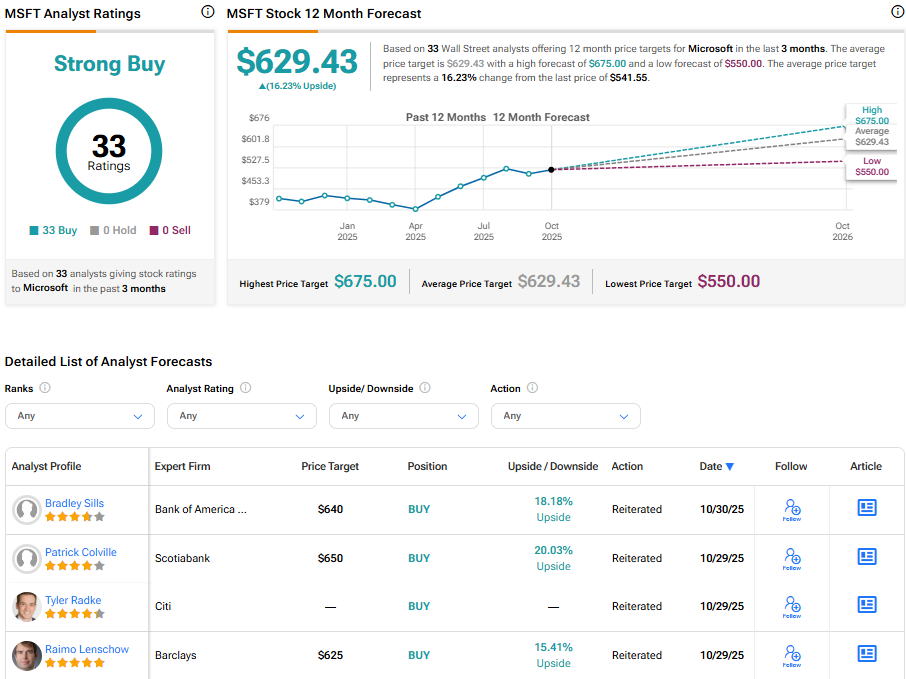 소폭 하락에도 불구하고, 마이크로소프트는 증권가 애널리스트들 사이에서 계속해서 강력 매수 의견을 유지하고 있으며, 33명 전원이 매수 의견을 제시했다. MSFT 주식의 평균 목표주가는 629.43달러로, 현재 가격 대비 16.23%의 상승 여력을 시사한다.