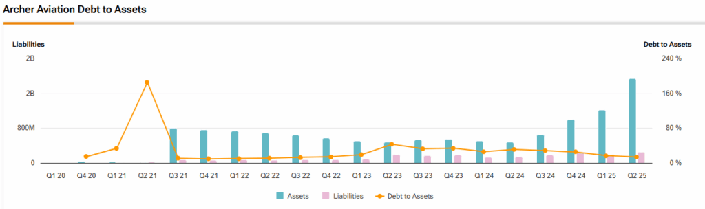재무적 관점에서 아처는 여전히 대규모 투자 단계에 있다. 2분기에 회사는 2억 600만 달러의 순손실을 기록하며 증권가 전망치를 하회했다. 현금 사용액은 약 1억 2,700만 달러에 달했으며, 이는 주로 생산 및 국제 프로그램에 대한 지출 증가 때문이다. 그러나 회사는 올해 초 8억 5,000만 달러의 자금 조달에 힘입어 17억 달러의 현금 및 현금성 자산으로 분기를 마감했다. 이 잔액은 아처가 단기적으로 추가 자금 조달 없이 계속 사업을 구축할 수 있는 여력을 제공한다.
