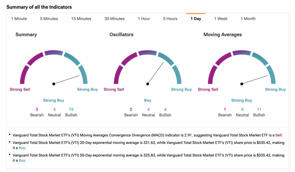 팁랭크스 기술적 분석에 따르면, VTI는 전체 요약과 이동평균 컨센서스를 기준으로 적극 매수 등급을 받았다.