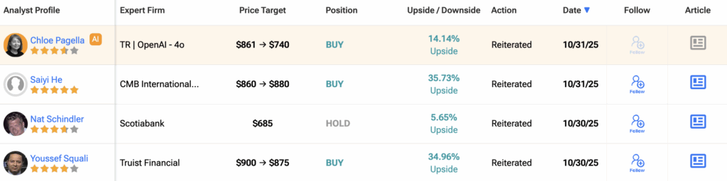 급락에도 불구하고 월가의 메타에 대한 확신은 여전히 강하다. 지난 3개월 동안 추적된 42명의 애널리스트 중 33명이 매수 등급을, 8명이 보유 등급을, 단 1명만이 매도 등급을 부여했다. 평균 12개월 META 목표주가는 847달러로, 최근 주가 대비 30% 이상의 상승 여력을 시사한다.