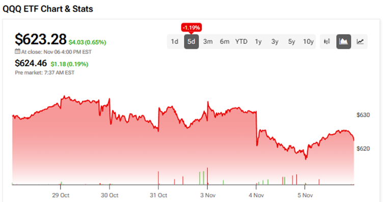 목요일 장전 거래에서 QQQ ETF는 0.19% 상승했다. 투자자들은 AI 주식의 높은 밸류에이션과 트럼프 관세에 대한 대법원의 논의를 주시하고 있다.