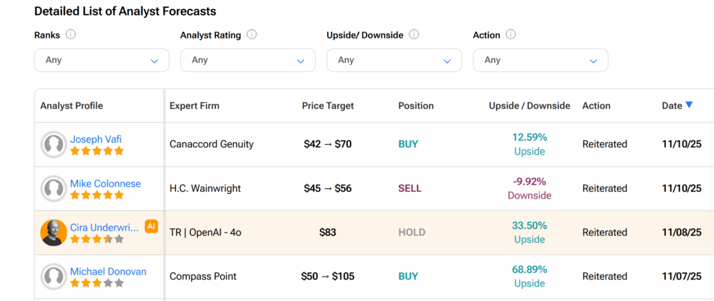 이전에 Roth MKM의 Darren Aftahi는 이 계약이 "더 많은 가능성을 가지고 있다"고 평가했으며, Cantor Fitzgerald의 애널리스트 Brett Knoblauch도 비슷한 견해를 밝혔다. 마찬가지로 Canaccord Genuity의 애널리스트 Joseph Vafi는 최근 평가에서 매수 의견을 재확인하고 목표주가를 66% 이상 상향 조정해 주당 70달러로 제시했다.