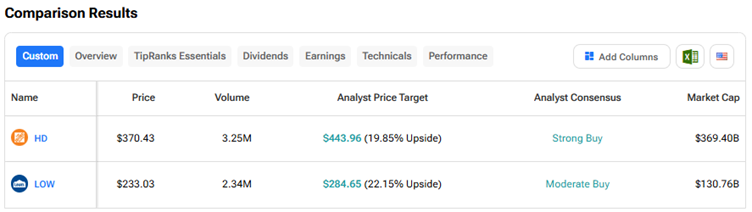 JP모건의 최고 애널리스트 크리스토퍼 호버스는 홈디포 (HD)와 로우스 (LOW)의 3분기 실적 발표를 앞두고 두 주택 개선 소매업체의 목표주가를 하향 조정했다. 구체적으로 호버스는 HD 주식의 목표주가를 452달러에서 444달러로 낮추면서 매수 의견을 유지했다. 마찬가지로 LOW 주식의 목표주가도 283달러에서 275달러로 하향 조정하면서 매수 의견을 재확인했다. 이 최고 등급 애널리스트가 목표주가를 낮춘 이유를 살펴보자.