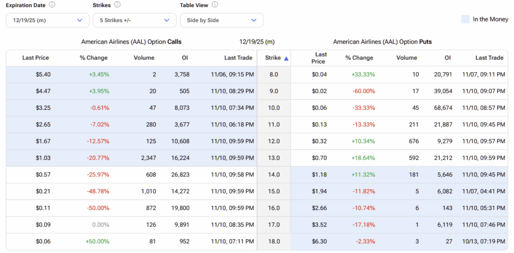 아메리칸 에어라인스(AAL) 주식 옵션 시장은 이 항공사가 엇갈린 기업 건전성을 보여주면서 변동성이 큰 상황이다. 본질적으로 이 어려움을 겪고 있는 항공사는 2025년 상반기와 하반기에 서로 다른 두 가지 실적 프로필을 보이는 이야기다. 올해 첫 6개월 동안 AAL 주식은 약 34% 하락했다. 이러한 적자는 재무적 어려움과 소비자들 사이의 전반적으로 불리한 인식에서 비롯되었다. 그러나 6월 이후 AAL은 약 24% 상승하며 강한 상승세를 보이고 있다.