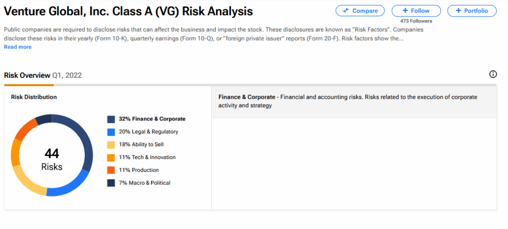 위의 벤처 글로벌에 대한 리스크 분석 도구를 참고하라.