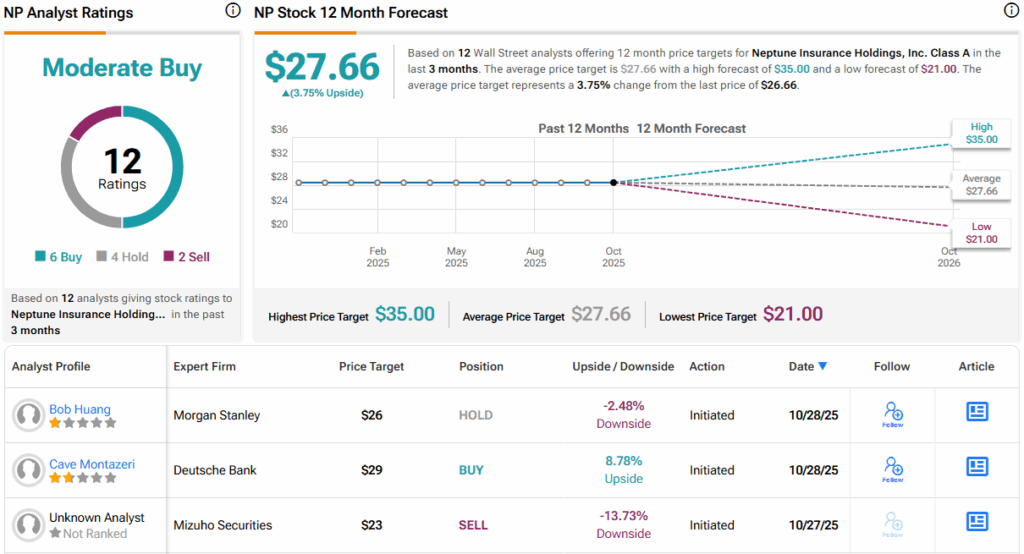 뱅크오브아메리카에서 이 신규 주식을 담당하는 조슈아 샹커 애널리스트에게 고려해야 할 핵심 포인트는 넵튠의 틈새시장에서의 성공이 아니라 주식이 너무 높은 가격에 공모되었다는 것이다. 샹커는 다음과 같이 설명한다. "넵튠 주식은 큰 관심 속에 상장되었다... 현재 가격에서 넵튠의 기업가치는 우리의 조정 EBITDA의 약 33배에 거래되고 있으며, 주식은 2026년 매출 예상의 약 19배에 거래되고 있다. 이는 절대적 기준에서 상당히 높은 밸류에이션으로 보이며, 섹터 무관심적 관점에서 볼 때 더욱 그렇다(특히 '보험주'라는 맥락에서 볼 때, 낮은 밸류에이션이 일반적인 곳에서). 그러나 넵튠은 오늘날 공개 시장에서 정확히 비교 가능한 회사가 없다(그리고 보험 섹터의 회사들과 비교할 때 그러한 차이는 확실히 더욱 두드러진다)."