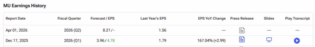 투자자들이 AI를 논할 때, 초점은 대개 GPU와 최신 LLM 데모에 맞춰진다. 그러나 조용한 현실은 엄청난 양의 고속 메모리 없이는 이 모든 것이 작동하지 않는다는 점이며, 이것이 바로 마이크론(MU)이 현재 자리 잡은 영역이다. 지난주 발표된 2026 회계연도 1분기 실적에서 이 회사는 기대치를 뛰어넘었을 뿐만 아니라 전체 메모리 산업을 바라보는 방식을 재정립했다.