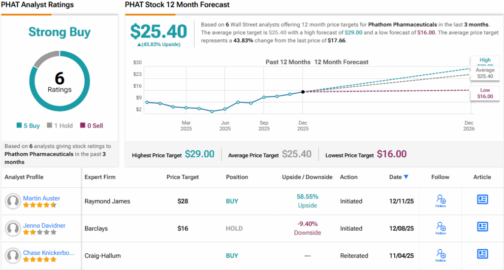 전반적으로 PHAT는 최근 6건의 애널리스트 리뷰를 받았으며 5건의 매수와 1건의 보유로 나뉘어 매수 강력 추천 컨센서스 등급을 받고 있다. 주식은 17.66달러에 거래되고 있으며 평균 목표주가인 25.40달러는 1년간 약 44%의 상승 가능성을 시사한다. (PHAT 주가 전망 참조)