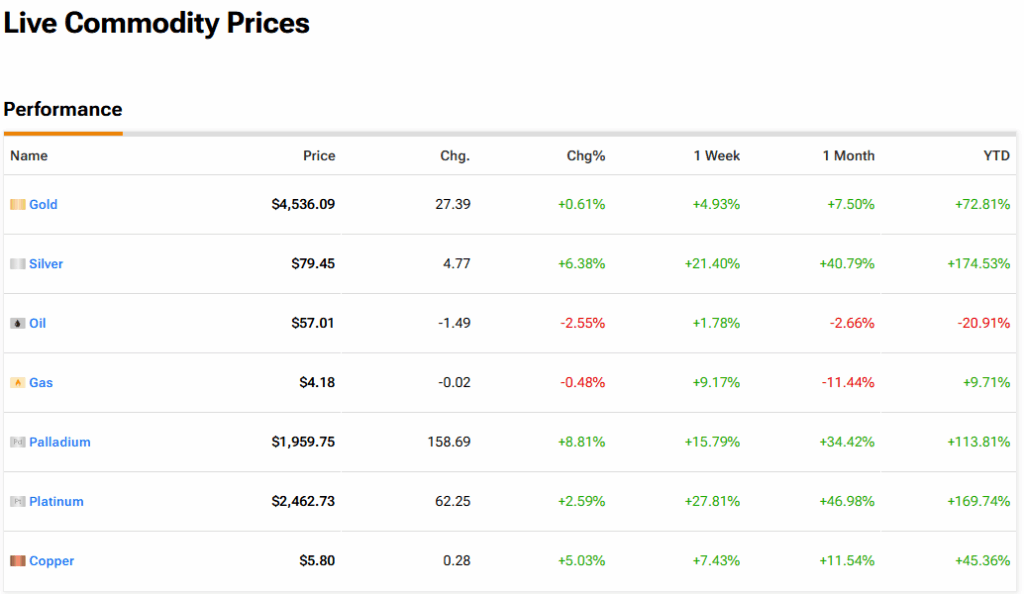 프리포트맥모란 (FCX)은 은 (XAGUSD) 가격이 온스당 79.45달러로 상승하면서 금요일 최고 상승 종목 중 하나였다. 금 (XAUUSD) 가격도 안전자산 수요가 지속되면서 1.3% 상승했다. 달러 약세, 낮은 채권 수익률, 공급 제약이 귀금속 가격 상승을 뒷받침했다.
