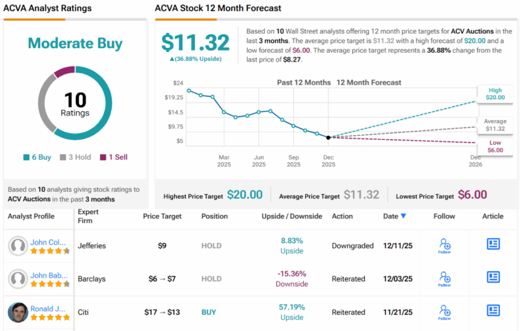 이러한 의견과 함께 애널리스트는 ACVA 주식에 매수 등급을 부여하고 목표주가 13달러를 제시했으며, 이는 1년간 57%의 상승 잠재력을 시사한다.