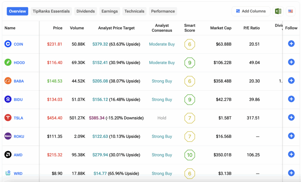 투자자들은 팁랭크스 주식 비교 도구에서 이 기사에 언급된 종목들을 비교할 수 있다. 아래 이미지를 클릭하면 자세한 정보를 확인할 수 있다.