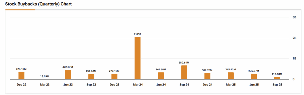 뛰어난 배당 외에도 알트리아는 일관된 자사주 매입을 통해 주주들에게 자본을 환원하고 있다. 2020년부터 2024년까지 회사는 79억 달러 상당의 주식을 매입했으며, 이는 주식 수를 의미 있게 줄이고 그 과정에서 주당순이익을 높였다. 2025 회계연도에만 알트리아는 이미 7억 1,200만 달러의 추가 자사주를 매입했다.