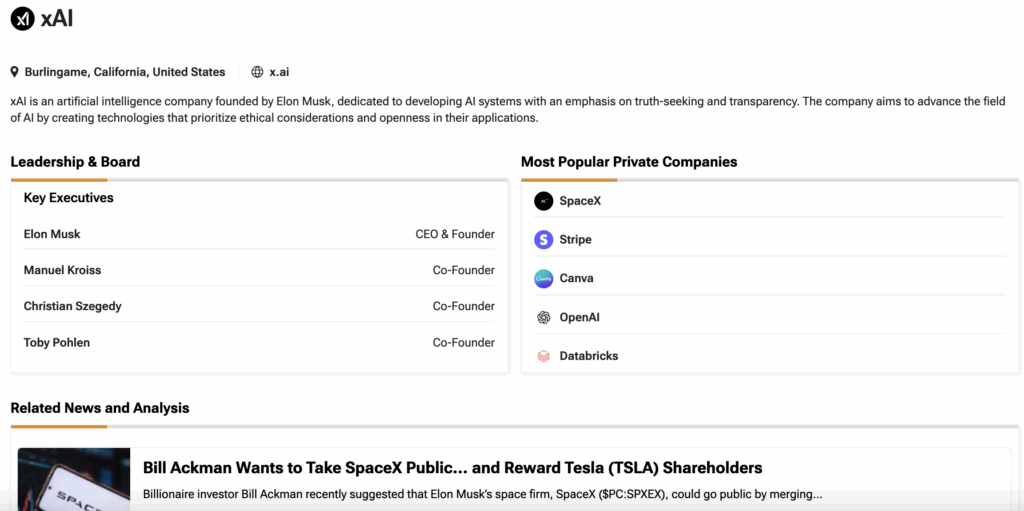 투자자들은 비상장 기업인 xAI의 최신 소식을 TipRanks를 통해 추적할 수 있다. 아래 이미지를 클릭하여 자세히 살펴보자.