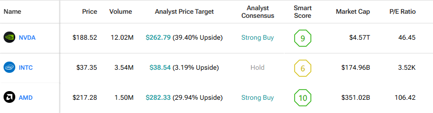 우리는 팁랭크스 비교 도구를 사용하여 세 종목을 나란히 배치하고 각 종목과 칩 산업 전반에 대한 심층적인 분석을 수행했다.
