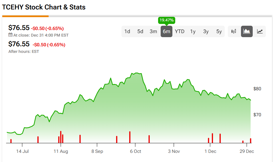 한편 TCEHY 주식은 화요일 0.65% 하락하여 76.55달러에 마감했다.