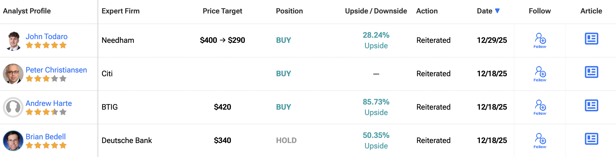팁랭크스 데이터에 따르면, 컨센서스는 보통 매수다. 이는 지난 3개월간 16건의 매수, 9건의 보유, 1건의 매도를 포함한 26명의 애널리스트 평가를 기반으로 한다.