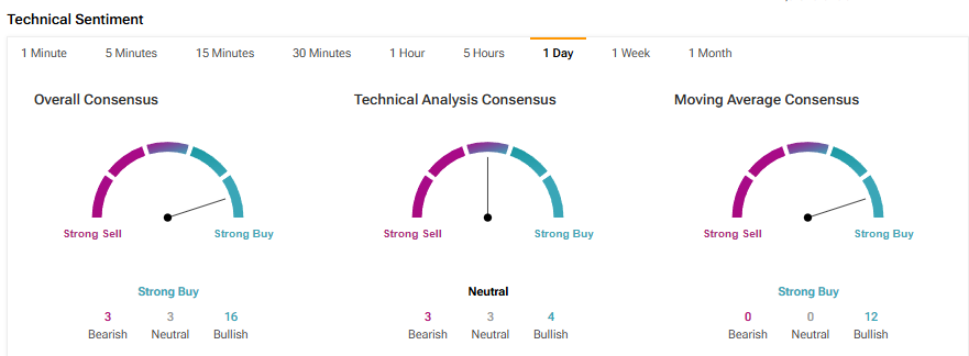 팁랭크스의 이해하기 쉬운 기술적 분석 도구에 따르면, 바이두 주식은 현재 상승 추세에 있다. 주식의 50일 지수이동평균은 122.21달러이며, 현재 가격은 150.27달러로 강세 신호를 나타낸다.