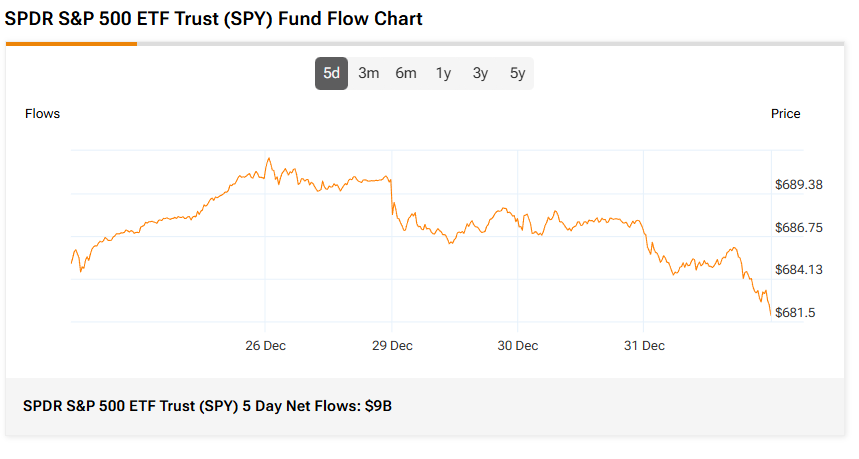 SPY의 5일간 순유입액은 총 90억 달러로, 투자자들이 지난 5거래일 동안 SPY에 자금을 투입했음을 보여준다. 한편 3개월 평균 거래량은 7,984만 주다.