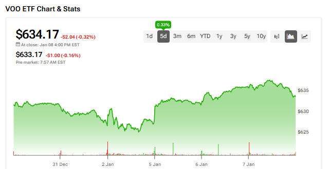 전체적으로 VOO는 지난 5일간 0.55% 상승했으며, 2025년 들어 16.82% 상승했다.