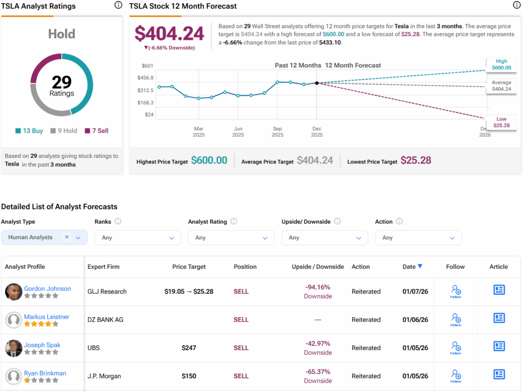 전기차 제조업체 테슬라(TSLA)는 가장 노골적인 비판자 중 한 명인 GLJ 리서치의 고든 존슨으로부터 목표주가 상향을 받았지만, 그의 전망은 여전히 매우 부정적이다. 실제로 존슨은 오랫동안 유지해온 목표주가를 19.05달러에서 25.28달러로 올렸지만 매도 의견은 그대로 유지했다. 상향 조정에도 불구하고 그의 새로운 목표가는 테슬라의 현재 거래 수준보다 여전히 약 94% 낮다. 존슨은 특히 테슬라의 핵심 자동차 사업과 관련해 테슬라의 가장 큰 회의론자로 명성을 쌓아왔다는 점이 주목할 만하다.