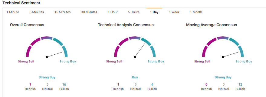 또한 모멘텀과 잠재적 가격 변화를 파악하는 데 도움이 되는 이동평균수렴확산(MACD) 지표는 매수 신호를 보이고 있다.