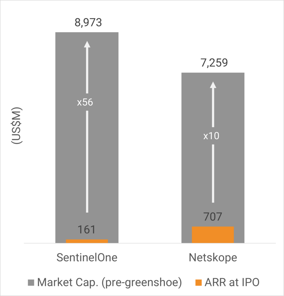 IPO 당시 센티넬원은 약 1억 6,100만 달러의 ARR을 창출하고 있었으며 ARR의 무려 56배로 평가받았다. 투자자들은 손실에 신경 쓰지 않았다. 그들은 세 자릿수 성장에 돈을 지불했다.