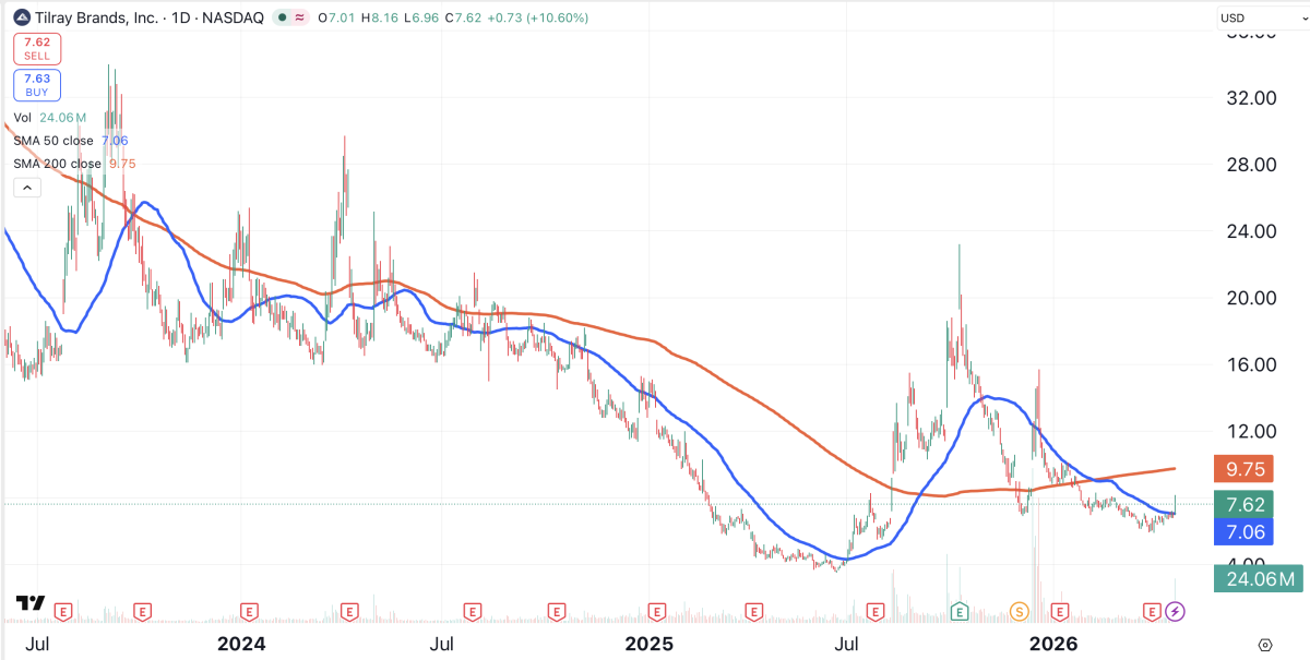 틸레이 브랜즈(TLRY) 주주들은 발생할 수 있는 손실을 직접 경험했다. 이 대마초 소비재 기업의 주가는 지난 5년간 95%의 가치를 잃었다.