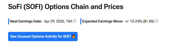 팁랭크스의 옵션 툴에 따르면, 옵션 트레이더들은 소파이 주식이 2026년 1분기 실적 발표 후 양방향으로 10.24% 움직일 것으로 예상하고 있다. 이 내재 변동성은 지난 4개 분기 동안 실적 발표 후 평균 주가 변동폭(절댓값 기준) 4.75%보다 높다.