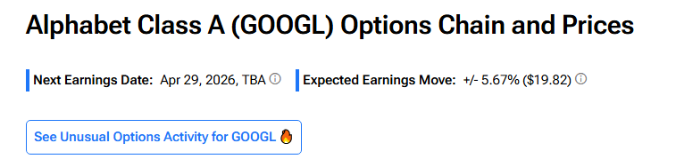 팁랭크스의 옵션 도구에 따르면, 옵션 거래자들은 1분기 실적 발표에 따라 GOOGL 주가가 양방향으로 5.67% 움직일 것으로 예상하고 있다. 이 내재 변동성은 지난 4개 분기 동안 알파벳 주식의 평균 실적 발표 후 변동폭인 1.44%보다 높은 수준이다.